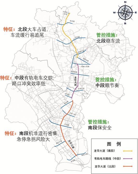 ▲龙华大道试点“节奏通行”,北、中、南三段协同优化,出行更有序。
