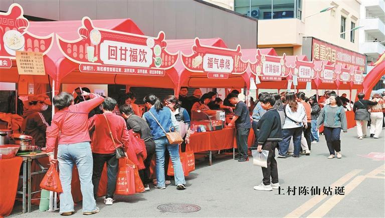3月11日(农历正月廿三),光明区公明街道上村社区陈仙姑庙外文化广场人声鼎沸、烟火升腾,一场以“非遗活态传承 文商旅融合”为主题的陈仙姑诞民俗活动在此举行。这场集美食、民俗、戏曲、文创、中医于一体的非遗盛宴,吸引数千市民游客前来打卡,本地美食展销带动消费,让百年非遗故事“活”起来,展现了文商旅深度融合的蓬勃活力。