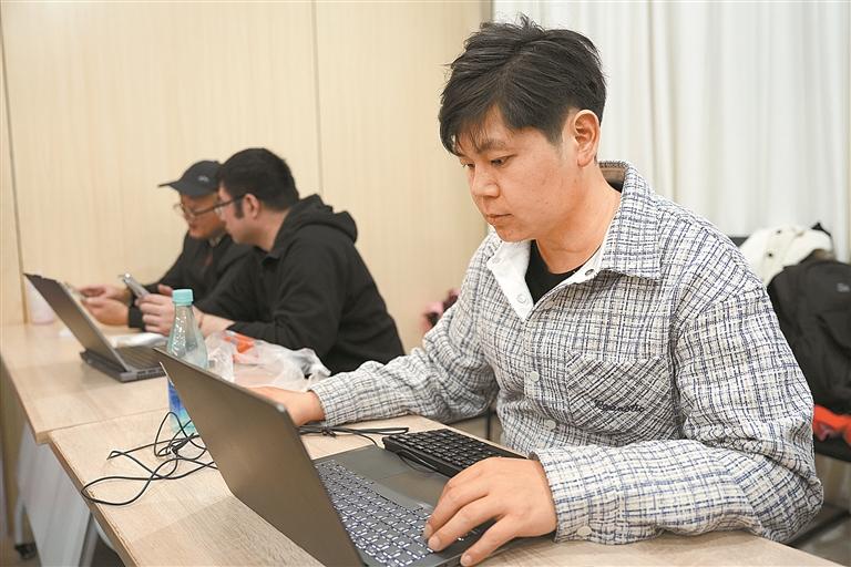 来自武汉的小伙郑嵩在章阁社区AI夜校学习。