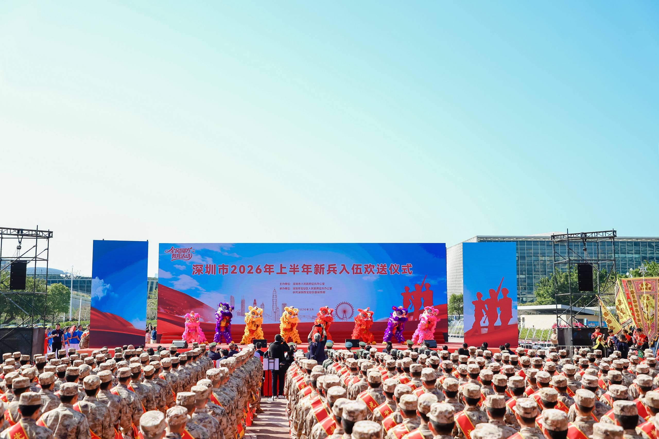 红旗猎猎映初心,军歌嘹亮启戎程。3月14日上午,深圳市2026年上半年新兵入伍欢送仪式在宝安湾区大广场隆重举行。全市优秀青年身着戎装、肩披绶带,怀揣报国壮志,满载家乡期盼,正式踏上保家卫国、矢志强军的光荣征程。
