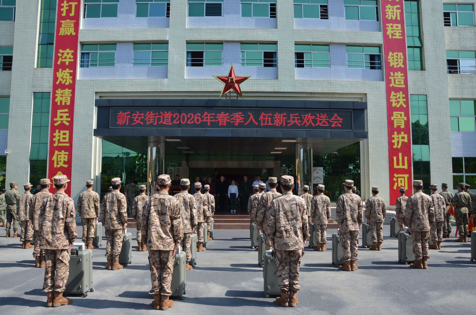 3月13日下午,宝安区国防教育训练基地内气氛庄重热烈,新安街道2026年上半年新兵欢送会在此隆重举行。街道领导班子、社区民兵连连长、入伍新兵及家属代表齐聚一堂,为即将奔赴军营的优秀青年践行。