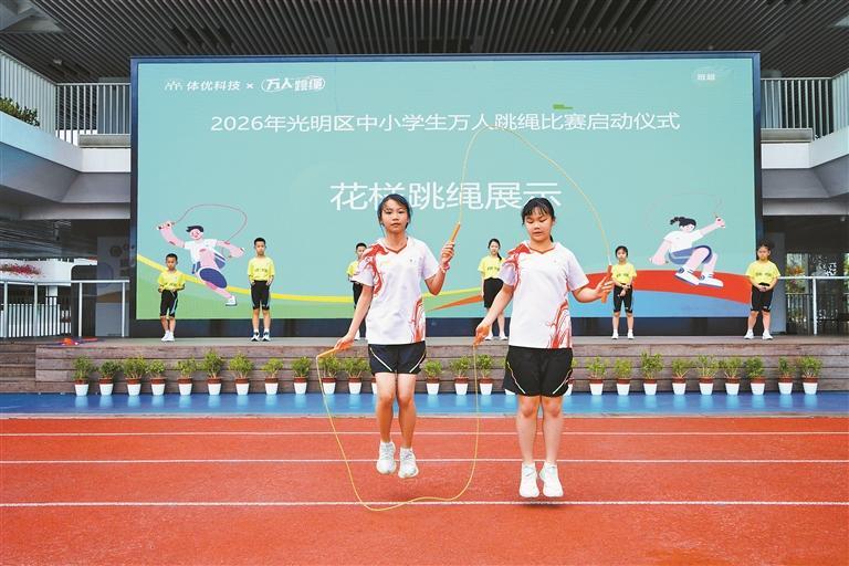 跃动的跳绳,奏响青春节拍;飞扬的身姿,定格成长模样。2026年光明区中小学生万人跳绳比赛,为全区中小学生搭建了技能展示、运动交流的优质平台,既是对全区中小学体育教育成果的集中检验,更是光明区落实“健康第一”教育理念、打造“湾区户外运动之区”的生动实践。
