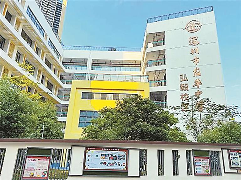 学校坐拥龙华中心校区、弘毅校区两大校区,地处龙华中心区核心地段,紧邻深圳北站,依偎龙华公园,地铁4号线龙华站、6号线元芬站分列东西两翼,交通便捷。校园依山傍园,建筑雅致,功能齐全,兼具书香气息与人文韵味,先后获评“深圳市花园式单位”“深圳市绿色学校”,为师生打造了舒适优美的育人环境。