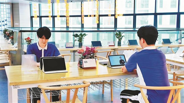 在萌宠温情之外,深圳市艺术高中以硬核实力搭建多元育人平台,兼顾文化根基、艺术培养与创新实践,为学子追梦保驾护航。校园内的书香智慧空间,为文化学习注入新活力:AI自习室配备专属平板与智能分析系统,精准查漏补缺,让自主学习更高效;图书馆藏书丰富,涵盖文化、艺术等多个领域,是师生课后充电的好去处,偶尔溜入的萌宠更添几分趣味;国际语言中心开设多语言课程,拓宽学子国际视野。