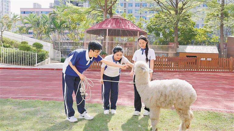 走进深圳市艺术高中,“艺家萌宠”天团总能瞬间吸引师生目光,成为校园里最具烟火气的治愈风景线。这里有羊驼“艺小驼”化身专属团宠,软萌可爱、乐于互动,课间时分常与同学们贴贴求摸,成为驱散学习疲惫的“移动开心果”;“嘎嘎天团”的鸭子、大白鹅,摇摇摆摆的模样搭配清脆啼叫,为校园增添无限生机;校园流浪猫们则拥有专属猫房,在同学们的温柔守护下,成为课间陪伴读书、放松身心的贴心伙伴。