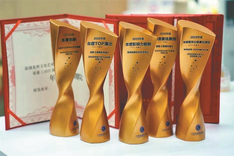 日前,由广东省演出行业协会主办的广东省演出行业年会暨“2025演艺广东”成果展示活动在广州落幕。作为粤港澳大湾区文化新地标,光明文化艺术中心凭借2025年卓越的艺术运营成果与行业影响力,一举斩获年度影响力剧院、年度TOP演出、年度最佳原创、最佳公益演出项目、年度创新五项重磅大奖,成为本次活动的最大赢家之一。