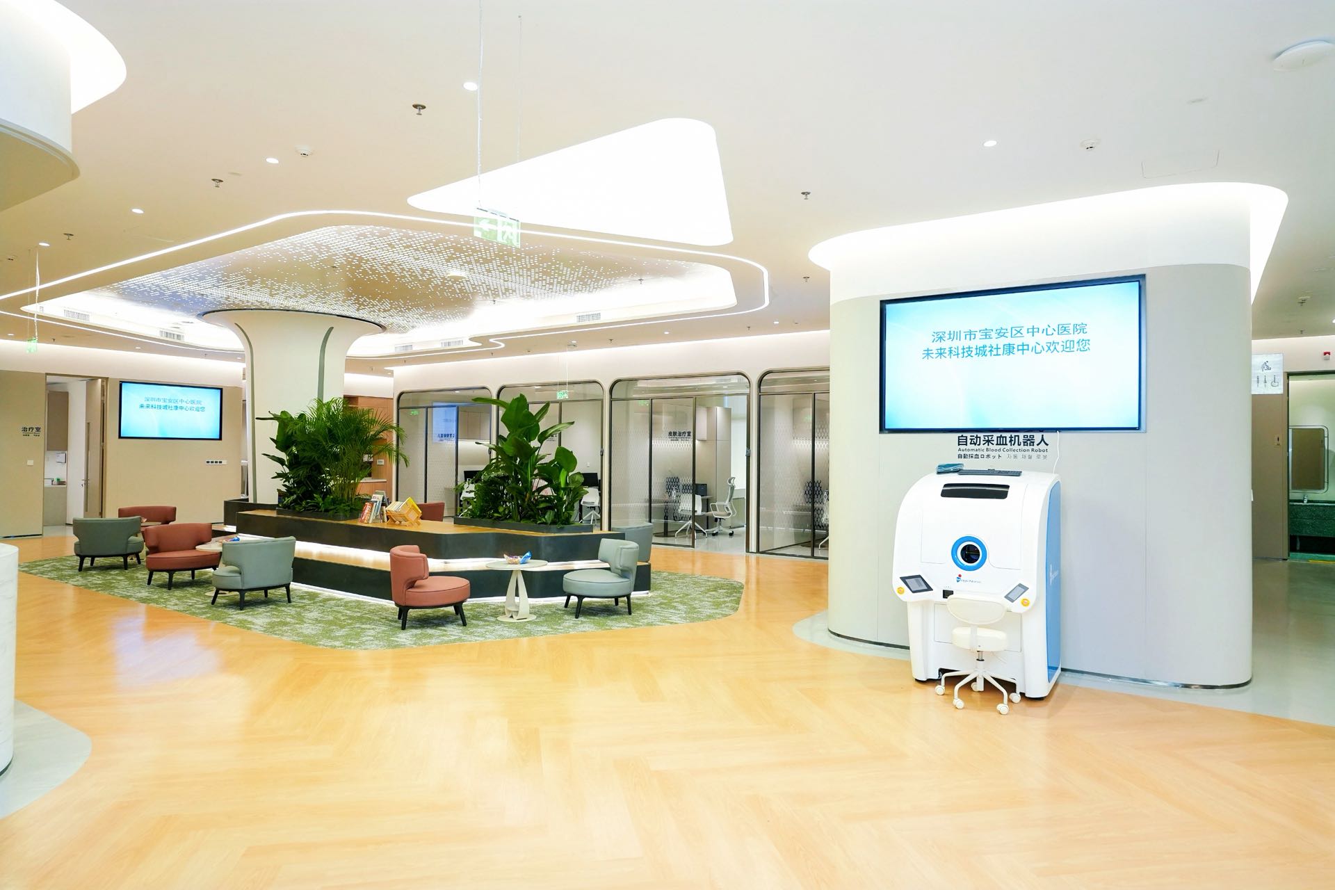 据了解,未来科技城社康中心是深圳市首家鸿蒙智慧社康,以AI机器人+鸿蒙智慧生态为双引擎,打造出全新的未来式健康服务标杆。科技感满满,作为深圳首家启用智能采血系统的社康机构,借助AI多模态成像自动识别血管、完成精准穿刺,大幅提升采血效率与安全性。与此同时,社康还配备中医四诊机器人、导诊机器人、情感陪聊机器人等多款智能医疗设备,依托鸿蒙系统分布式能力,搭建起数据互通、高效协同的“数字底座”,为开展远程诊疗、推进主动健康管理筑牢了技术支撑。