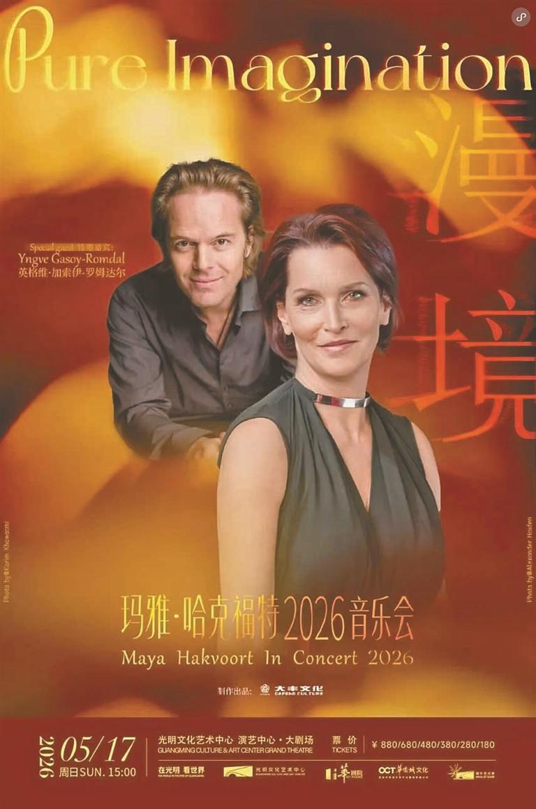 5月17日,玛雅·哈克福特2026音乐会《漫境》将在光明文化艺术中心演出,观众可通过微信公众号“光明文化艺术中心”购票。