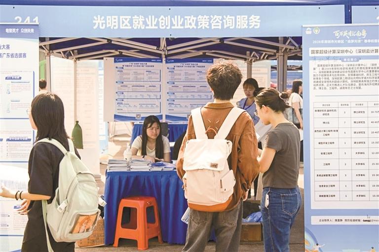 活动现场,光明区人力资源局通过设置政策宣传专区,派发宣传手册、开展一对一咨询等形式,向到场学子细致解读光明区“名校优才”等人才扶持政策,同步推介广东省“众创杯”创业创新大赛,鼓励青年学子抢抓发展机遇、积极创新创业。