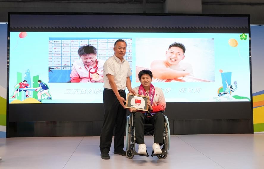在2026年宝安区残疾人运动会暨深港交流活动上,全国残特奥会5枚金牌得主、宝安游泳运动员任昱霄被授予“宝安区残疾人体育文化推广大使”荣誉绶带。任昱霄在接受采访时,深情致谢宝安关怀、畅谈对助残帮扶的理解,点赞宝安残疾人事业,并呼吁更多残疾人朋友勇敢参与运动、绽放生命光彩。