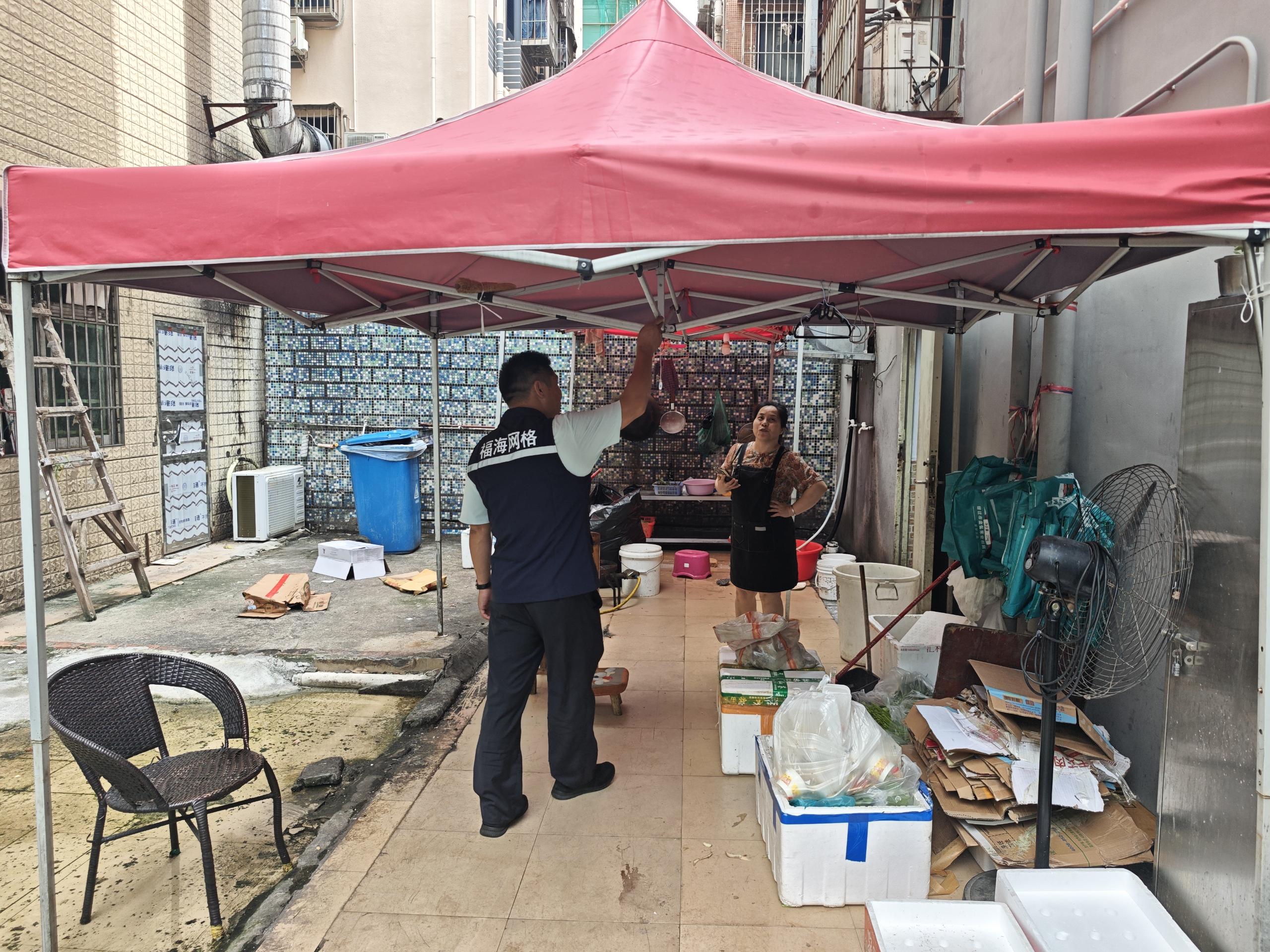 在防灾宣传方面,福海网格中心同样下足功夫,构建“线上+线下”立体化宣传体系。线上通过网格员个人朋友圈、楼栋微信群、企业联络群等渠道,实时推送台风动态、气象预警信息及防灾避险指南,确保信息快速触达辖区居民;线下组织网格员深入出租屋、老旧小区开展上门走访,当面提醒居民及时清理阳台、窗台杂物,台风期间减少不必要外出,切实提升居民自我防护意识和能力。