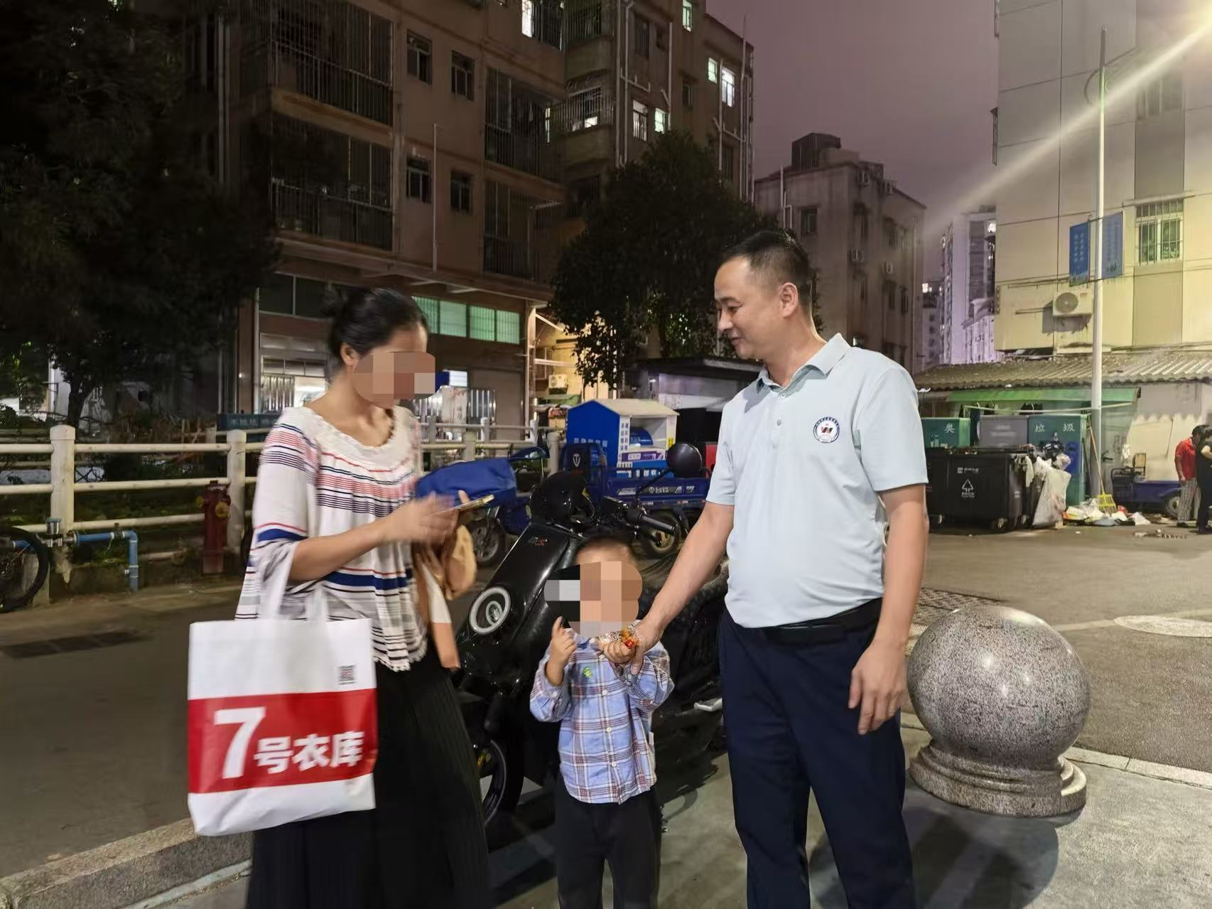 日前,桥头网格站站长钟伟锋在黄屋小区发现一名与家人失散的幼童。由于孩子年幼,无法说出有效信息,钟伟锋耐心地引导其在手机上输入号码,最终成功联系上孩子的母亲。当网格站站长驾车将幼童平安送到家人手中时,孩子母亲感激之情溢于言表。