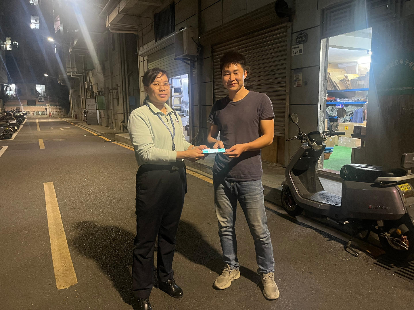 同日,新田网格站网格员蔡小玲在碧湖新村捡到一部手机。她通过接听来电确认失主身份,并主动约定地点,将手机顺利交还。失主现场验证后,连连致谢。