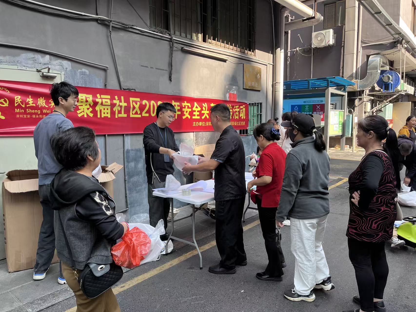 为提升社区居民骑行安全防护意识,有效降低道路交通事故风险,营造安全有序的社区交通环境,近日,福永街道聚福社区在万福人家、龙腾阁和聚福园等七个小区开展了“2025年安全头盔主题”宣传活动,惠及居民八百余人次。