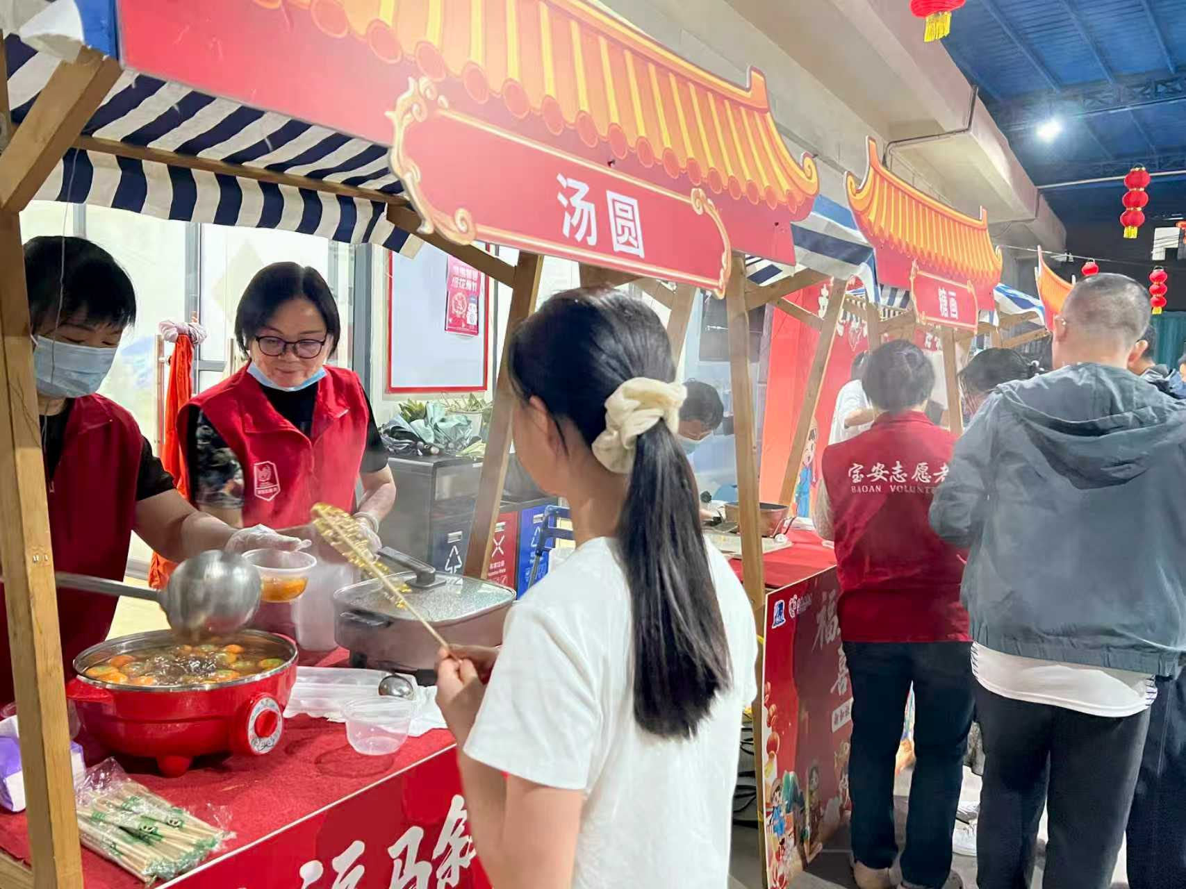 活动现场灯笼高挂、喜气洋洋。精心设置的游戏区人气高涨,“笑掉大牙”“幸福基围”“幸运鱼虾蟹”“虾蟹入笼”等八项趣味游戏吸引了各年龄层的居民踊跃尝试,欢笑声、加油声此起彼伏。五彩灯谜悬挂于花灯之下,居民们驻足思索、互相探讨,在猜谜乐趣中感受传统民俗的独特魅力。美食摊位前人头攒动,热气腾腾的汤圆寓意团圆美满,巧手制作精美糖画和香甜的棉花糖更让小朋友们欢喜不已,舌尖上的甜蜜为节日增添满满暖意。